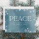 Impress everyone on your Christmas card list with an elegant holiday postcard. The non-photo Christmas postcard displays "Peace" is featured in a trendy modern serif font with a border white snowflakes against an icy blue watercolor background. Personalize the front of the postcard by adding your name and custom greeting. The back of the holiday postcard features your return address and space your custom message. The design coordinates with our Frosted Peace Christmas card collection.