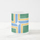 Celebrate Portland's unique identity with this beautifully designed frosted glass mug. The flag showcases an abstract design with light blue and yellow lines on a green background, representing the vibrant and dynamic spirit of the city.