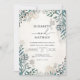 Evoke a serene winter wonderland with this design featuring frosty spruce branches and delicate botanical blooms. The cool, muted palette creates an atmosphere of refined elegance, perfect for a charming winter celebration.