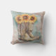 Perky gold sunflowers peek out of the top of the cowboy boots on this unique and rustic pillow. The watercolor images are placed on an abstract teal and wood panel background. A frost overlay gives the scene a weathered look. The back of the pillow is identical to the front.
