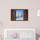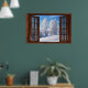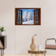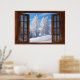 Window Illusion - Snow Frosted Trees Through an Open Window View