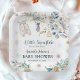 Bring frosty magic to the table with these sweet paper plates featuring the Frosty Little Snowflake Clothesline design – tiny knit baby outfits on a snowy line, delicate watercolor snowflakes, frosty berries, and golden ornaments in icy blue, gold, and cozy beige. Gender-neutral and perfect for winter baby showers. Matches the entire collection!