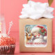 Add extra Christmas magic to your gifts, cards, and holiday décor with this adorable personalized sticker featuring a classic Santa Claus and his cheerful red-nosed reindeer, Rudolph. Designed in a cute, nostalgic style, this festive sticker brings warmth and whimsy to every surface. Personalize it with a name or short message to create unique Christmas labels for kids, family, party favors, treat bags, mailers, scrapbooking, or DIY holiday crafts. The charming Santa and Rudolph artwork makes it a perfect choice for children's gifts, stocking stuffers, school events, and festive party decorations. Whether you’re preparing holiday packages, decorating your planner, or adding a special touch to Christmas cards, this high-quality custom sticker adds cheerful personality to every celebration. A delightful, customizable accessory that spreads joy all season long.