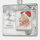 Display a treasured family photo in this elegant ornament featuring frosty snow on a bare winter tree in silver and white with Happy Holidays message in image texts with lines of customisable text and place for personal photo.