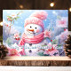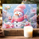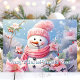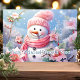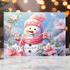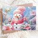 Send warm holiday greetings with this charming card featuring a cheerful snowman bundled in a pink scarf, surrounded by lovely pink poinsettias. The sweet message "Frosty Wishes and Poinsettia Kisses" adds a whimsical and festive touch, perfect for spreading joy to friends and family this Christmas season.