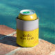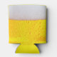 Fun can cooler printed front and back with a frothy head of beer and golden beer bubbles background texture. On the front there's customisable text areas for you to add your own name and message