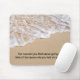 Frothy ocean saltwater on beach sand with inspirational quote.