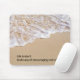 Frothy ocean saltwater on beach sand with inspirational quote.