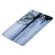 This flexible magnet features an impressionistic depiction of a scenic winter landscape of frozen Cayuga Lake viewed from Stewart Park in Ithaca, NY. It is one of the five Finger Lakes in upstate New York. The frigid icy cold day in February is illustrated by the lovely shades of blue, grey, black and white of the ice and sky. Willow tree branches in silhouette frame the foreground.