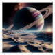 A glossy poster of the "Frozen Moon of a Ringed Giant" artwork by Planetary Prankster.