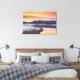 Featuring a breath taking view of a Cold Frozen river with snow on the ground and sky scape leading out under a orange and blue sky.on this Wrapped Canvas