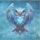 A powerful icy blue watercolor owl with glowing eyes and outstretched wings. this mystical fantasy bird design blends elegance and intensity, perfect for lovers of owls, gothic art, and magical winter esthetics.