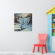 Artwork of a frozen waterfall in winter. This striking artwork captures a waterfall completely transformed by the cold, its cascading water frozen into a breathtaking display of ice formations and long, shimmering icicles. The surrounding landscape, dusted with snow and framed by bare trees, enhances the sense of a crisp, still winter day. The scene is rendered in cool tones, highlighting the blues and whites of the frozen water and snow-covered banks. The bare branches of trees stand stark against the winter sky, creating a powerful sense of the season's quiet solitude. This piece is perfect for adding a touch of serene, winter-like atmosphere to your room. This piece can be customised, printed, and or downloaded.