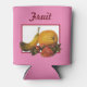 You can change the background colour and change the text on this can insulator sleeve. The image is derived from my original acrylic painting, Fruit.