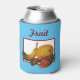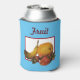 You can change the background colour and change the text on this can insulator sleeve. The image is derived from my original acrylic painting, Fruit.