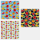 Colourful fruits on striped/black background. Digital art