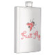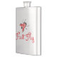 The product is a good size and came exactly as it was pictured. The lid is not attached to the flask, which could be dangerous on drunken nights... The print came out surprisingly well and looks very sharp. Would definitely recommend.