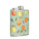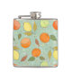 Fruit pattern with lemons, oranges, lime and grapefruit. Bright citrus fruits on a light green background with multicolored splashes of paint.