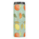 Fruit pattern with lemons, oranges, lime and grapefruit. Bright citrus fruits on a light green background with multicolored splashes of paint.