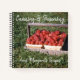 Yummy sweet red strawberries in a picking container mid-century inspired canning and preserving recipe journal on a square 8.5" x 8.5" spiral notebook. Personalise this book with your title, date and paper inside.