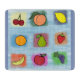 This design is of different types of fruit, sketched on a blue background and each fruit is on a coloured backdrop. This image is available on a variety of other products, just click the link below the photo near 'About this Design'.