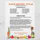 Fruits, vegetables, olive oil, chef's knife and wooden spoon recipe, menu, flier or flyer letterhead stationery for cooking classes, personal chef, caterer or catering, or other gourmet food or culinary business. Carrot, tomato, onion, pea pods, lemon, apple in watercolor style.
