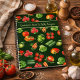 Fruits and vegetables with your recipe binder title on a dark green background.
