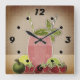 Fruits cocktail strawberry apple lemon lime retro square wall clock