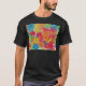 I give wanted to give this a 4 instead of a 5 because these Basic DARK T0shirts run unexpectedly SLIM or Narrow. Which is great if you do not have a potbelly, but I have a paunch. It isn't the shirt's fault that I've got a beer belly. The design and shirt itself is a quality cotton shirt. The color is more of a deep purple, but still a very pretty color. The Basic DARK T-shirts run a bit SLIMMER than the Basic Ts. The neck is a fraction narrower (or seems to be narrower) also. I'm a paunchy middle-aged woman and my neck is 12 inches (31cm) thick and the neckline fell about the same as in the photo of the man, and I had the desire to tug it a bit. So if you're a thick necked man or like loose shirts, be aware these are slimmer shirts. Once I get rid of my lockdown paunch it'll look great. The shirt washed well in cold water with no apparent bleeding. We don't have a dryer, so it hung dry. Did not shrink. Love the colors and the design. The design looks smaller on my shirt than it does on the model on-line. But still, it looks good on the shirt. The printing looks as it does on the model, just the size seems fractionally smaller. Washed garment in cold water, hung dry and design appeared unaffected.