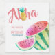 Fun fruity tropical party item featuring illustrated watercolor fruits and leaves. Vibrant shades of pink, green, sunny yellow make this item pop! Modern typography ensures this will make your event stand out in a crowd and very memorable.
