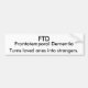 FTD, Frontotemporal Dementia, Turns loved ones into strangers. Bumper Sticker