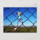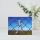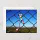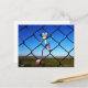 Fubby puppet climbing up the fence. postcard