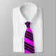 This fuchsia and black necktie features black diagonal stripes in bunched grouping of three. A striking and eye catching fuchsia tie to compliment your outfit.