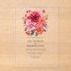 Add modern elegance to your celebration with this vibrant acrylic wedding invitation featuring a lush bouquet of fuchsia, coral, and tangerine florals. Designed for couples who love color and sophistication, this transparent invitation highlights bold blooms while letting your wedding details shine. Perfect for summer, garden, or destination weddings, it beautifully combines romantic florals with a sleek, contemporary acrylic finish. The reverse side includes space for a customizable QR code and photo placeholder, making it easy for guests to RSVP or access your wedding website.