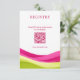 Share your gift and honeymoon details in bold, modern style with this Fuchsia and Lime Green Modern Wedding Collection double-sided registry card, designed to coordinate seamlessly with your full stationery suite. One side features a QR code linking directly to your gift registry, while the other showcases a QR code for your honeymoon fund—making it simple and effortless for guests to contribute digitally.