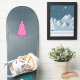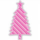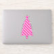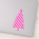 Sticker in a classic silhouette of a Christmas tree in deep fuchsia and pastel pink in candy cane stripes