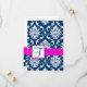 Save the Date Cards with Blue and White Damask Pattern, Monogram, and Names with Fuchsia Pink accents. Portrait Layout. Design by Elke Clarke ©2009. Graphics licensed for use. Customise with your monogram, names and wedding announcement information. Also, choose from a variety of fonts and beautiful papers to make your save the date cards FABULOUS! Then use the same design for your wedding invitations. Contact us for alterations in colours.