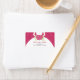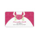 Elegant bridal shower or wedding shower labels feature a beautiful vector illustration of a bride holding a bouquet of pretty flowers on a an elegant damask or lace background pattern. Art by Cocoa Studio