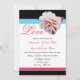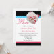 Beautiful fuchsia flower over an elegant pink, aqua blue, and black invitation design.