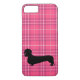 Fuchsia Grey Plaid Dachshund Pattern Preppy Case-Mate iPhone Case