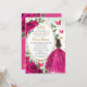 Fuchsia Hot Pink Floral Princess Gold Quinceañera Invitation