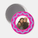 Personalize this circle magnet with your photo and descriptive text to create one of a kind magnet gifts for friends, parents and grandparents. The wavy line bottle cap style squiggle is chic and trendy in lilac purple on a hot pink magenta background. Create your own custom magnet by using the blue edit design button to change the colors and fonts to suit your style completely.