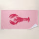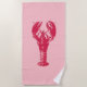 Beach towel in a digital sketch of a Lobster in deep fuchsia pink on a pastel pink background