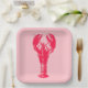 Paper plates in a digital sketch of a Lobster in deep fuchsia pink on a pastel coral pink background