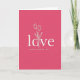 This card features a rich fuchsia background that sets a romantic, modern mood ❤️. Centered on the front, the word “love” appears in white, using a simple sans-serif style that feels smooth and confident. The letter “o” is replaced by a thin white outline of a hand gently holding three tulips, as if offering them to someone special 🥰. The tulip stems curve upward with small petals at the top, giving the design a tender, giving gesture without adding extra clutter. A faint shadow behind the white lettering and flower outline makes the elements look slightly raised from the pink surface. Beneath the main word, “HAPPY VALENTINE’S DAY” is set in smaller white capital letters, aligned under the center. The composition stays minimal and balanced, with lots of open pink space around the white art and text. The tulips are drawn in fine white lines, with three blooms sitting just above the hand inside the “o” shape.