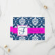 Fuchsia Navy Blue Damask Save the Date Card