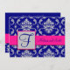 Fuchsia Navy Blue Silver Damask Save the Date 1B Invitation