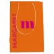 fuchsia and orange custom initial name modern medium gift bag ,Add a bold pop of color to your gift-giving with this fuchsia and orange custom initial name gift bag. Featuring a modern, eye-catching design, this medium-sized bag is personalized with your chosen initial and name in a stylish script, making every gift feel unique and thoughtfully presented.