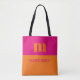 Fuchsia & orange custom initial name modern tote bag