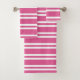 A bright stripe, this fuchsia pink is fun and happy. Paired with white, it's crisp and beachy, too. This fresh striped pattern looks great in a home, apartment or dorm bathroom. The alternating thick and thin stripes add a sophisticated touch. Get sets in different colours for different people to know whose towel is whose! Great housewarming gift for a new apartment to brighten up the inevitable white walls.